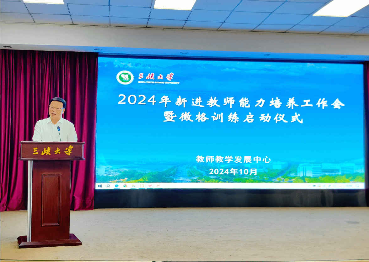 (文/张丽超 图/王浩政、饶轩诚)10月12日下午,三峡大学2024年新进教师教学能力培养工作会暨微格训练启动仪式在求索报告厅举行。学校党委常委、副校长黄应平出席启动仪式。学校相关职能部门和学院负责人、教学副院长、教学办主任、2024年纳入教师教学能力培养青年教师和校级督导员近200人参加了启动仪式。