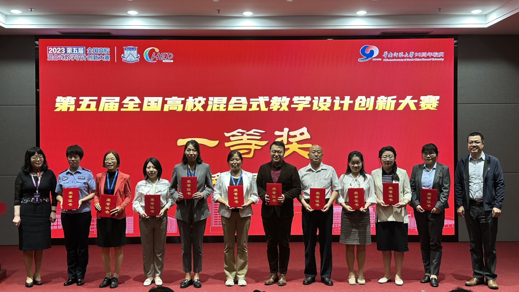 本网讯(通讯员 张丽超/文 何婧/图) 11月12日,第五届全国混合式教学设计创新大赛在华南师范大学落下帷幕。我校选派三个教师团队参赛,外国语学院胡晓琼老师团队入围现场赛并荣获全国一等奖,经济与管理学院黄华老师团队荣获全国三等奖,生物与制药学院王慧老师团队荣获优胜奖,实现了我校教师在全国综合类教学竞赛中国家级奖励零的突破。