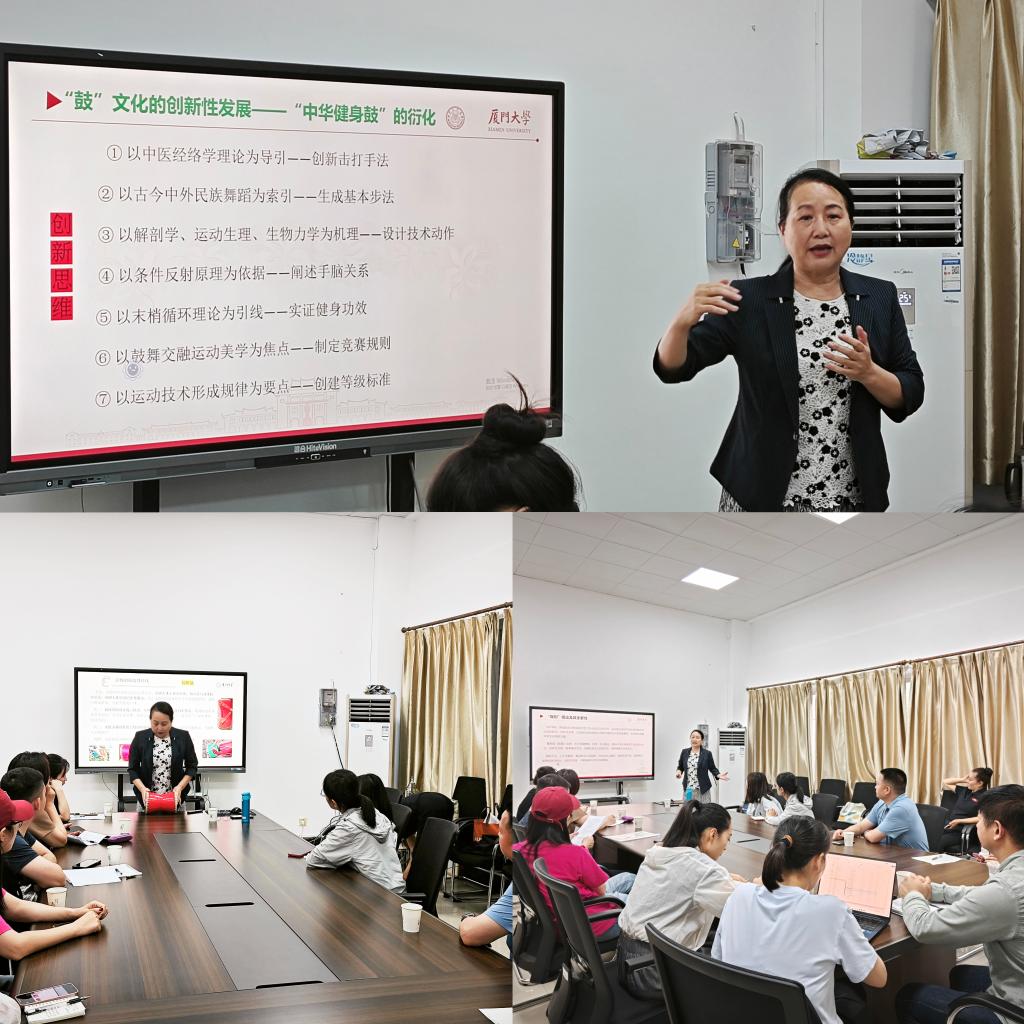 (通讯员 仲慧)2024年6月2日,我院在综合训练馆306会议室举办了学校2024年第6期“名师指导坊”。此次活动特别邀请了厦门大学体育教学部教授郑婕作为主讲嘉宾。院长秦小平、副院长罗红、副院长廖萍、学院师生参加了此次活动,活动由副院长廖萍主持。